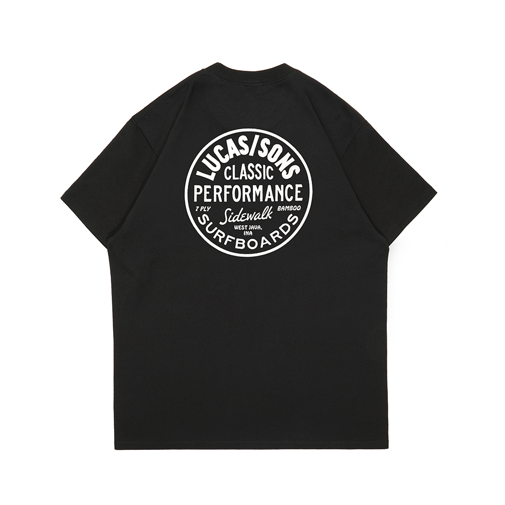 CLASSIC BLK – T-Shirt Lucas and Sons Classic warna Black berbahan 100% Soft Cotton (145-150 gsm) preshrunk dengan body size tubular construction. T-shirt Lucas and Sons ini bersablon discharge grafis ‘classic performance’ di dada kiri dan punggung.