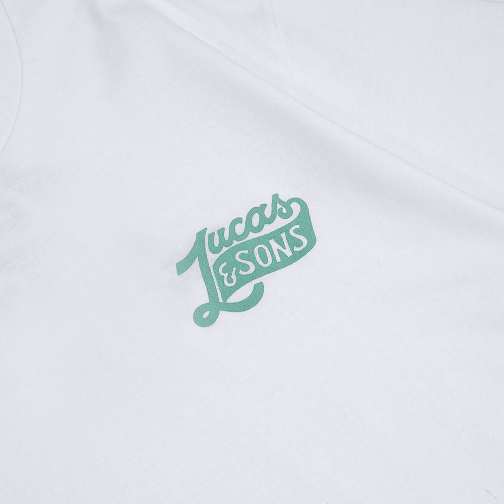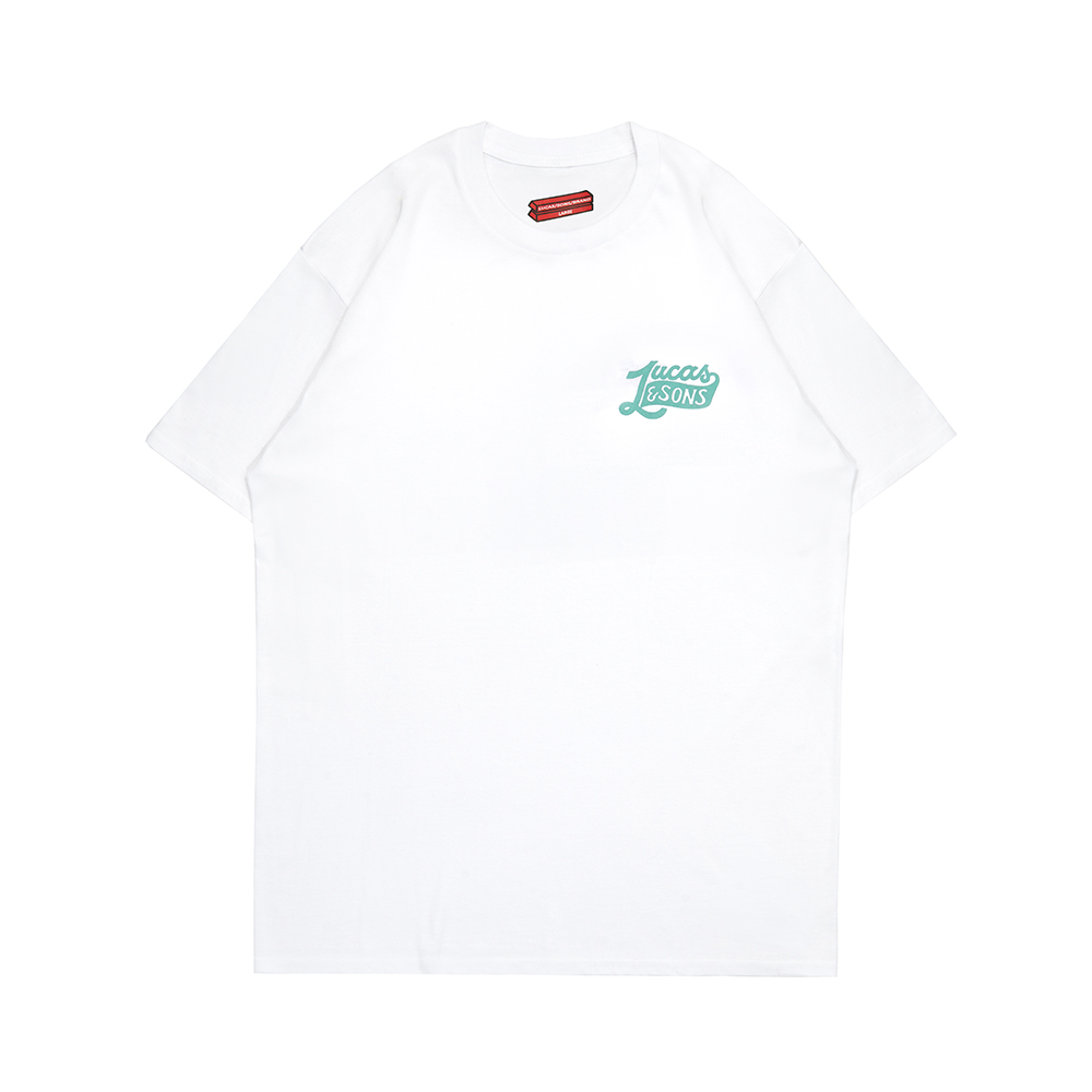 LUCAS TYPE NEON WHT – Lucas and Sons Lucas Type Neon T-Shirt in White 100% Heavy Cotton (180 gsm) preshrunk body size tubular construction. This Lucas and Sons t-shirt is finished with plastisol screen printed left chest and rear ‘lucas and sons type’ graphics.