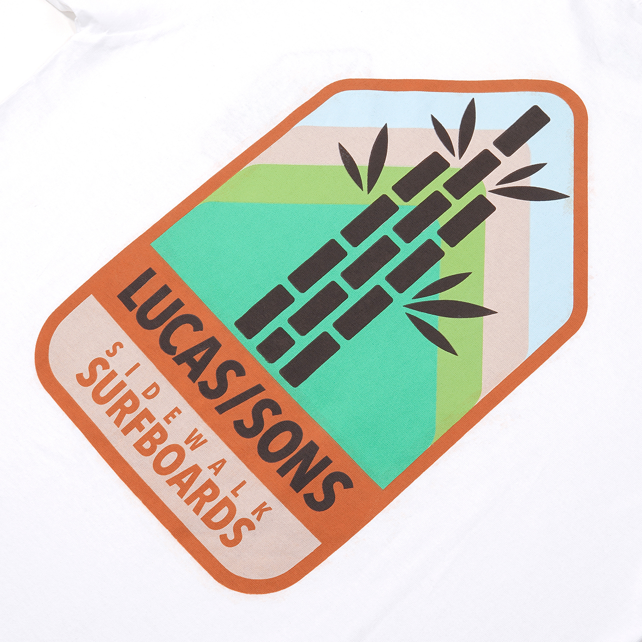 ORG BAMBOO WHT – Lucas and Sons Org Bamboo T-Shirt in White 100% Heavy Cotton (180 gsm) preshrunk body size tubular construction. This Lucas and Sons t-shirt is finished with sw screen printed left chest and rear ‘bamboo sidewalk surfboard’ graphics.