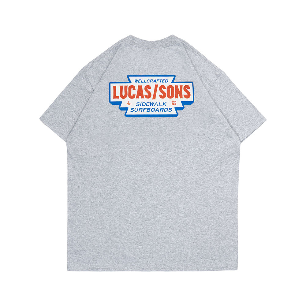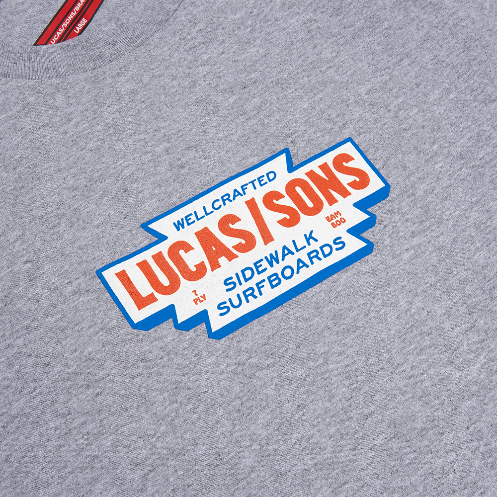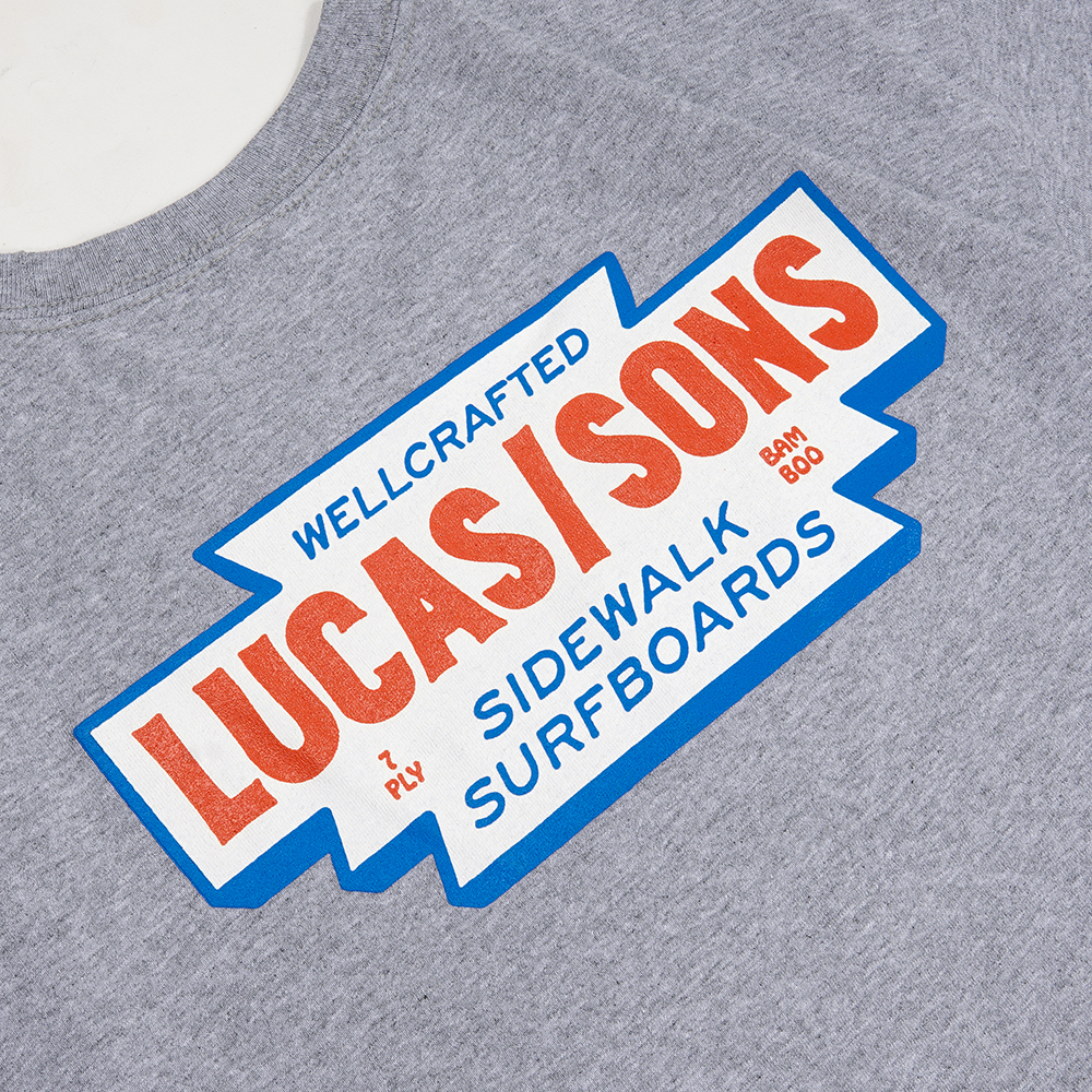 RACE RED SGR – T-Shirt Lucas and Sons Race Red warna Sport Grey berbahan 100% Heavy Cotton (180 gsm) preshrunk dengan body size tubular construction. T-shirt Lucas and Sons ini bersablon sw grafis ‘well crafted sidewalk surfboard’ di dada dan punggung.